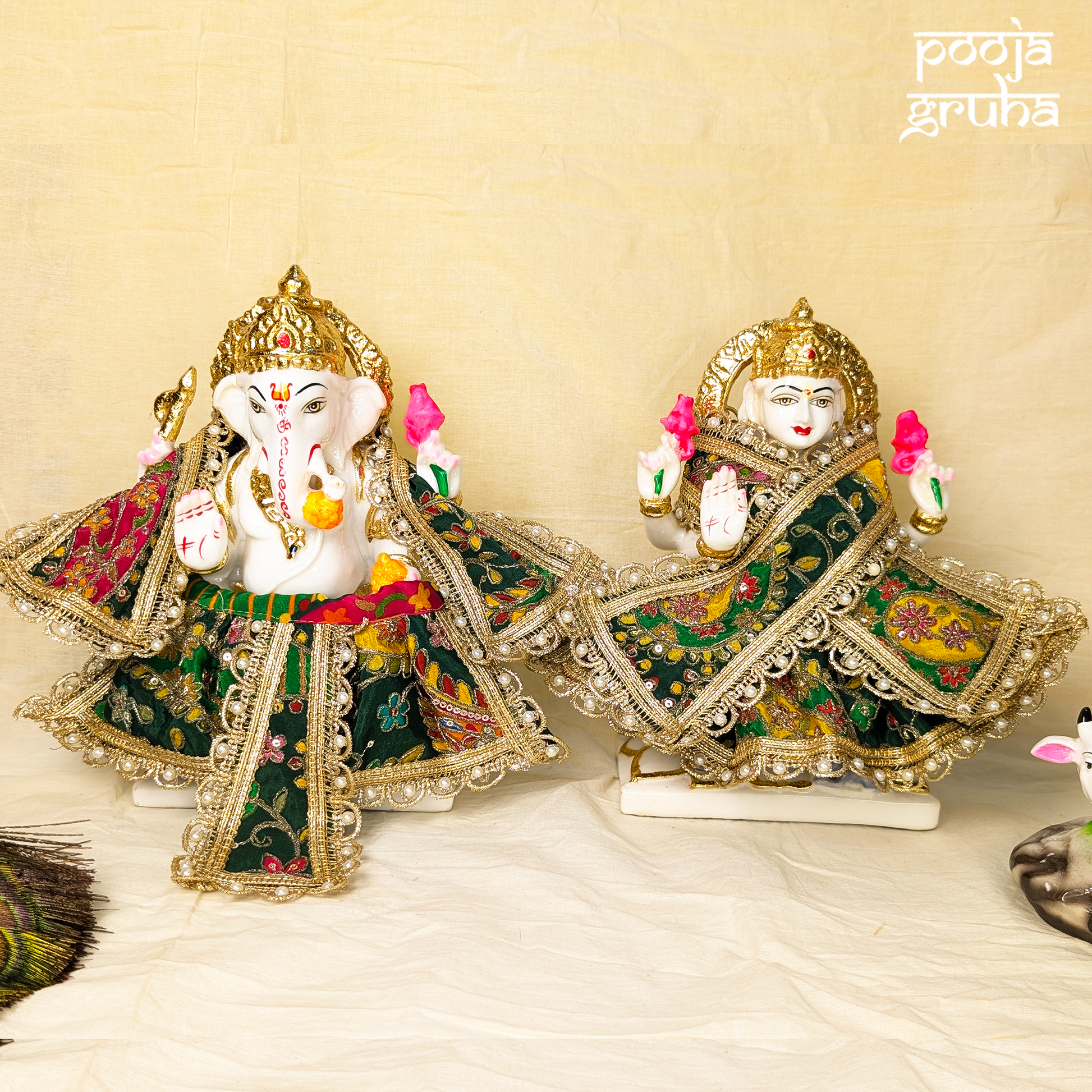 Radha Krishna Ji / Laxmi Ganesh Ji / Standing Idols Svarṇa Vastra Set