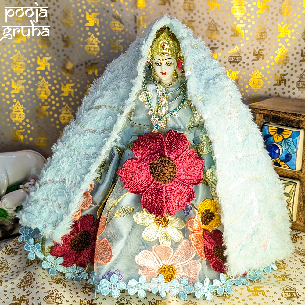 Processing time: 2-3 days (At Pooja Gruha, we create each garment fresh, made-to-order with devotion and care. We believe that every offering to our deities should be filled with love and crafted specifically for them, making each piece truly special).