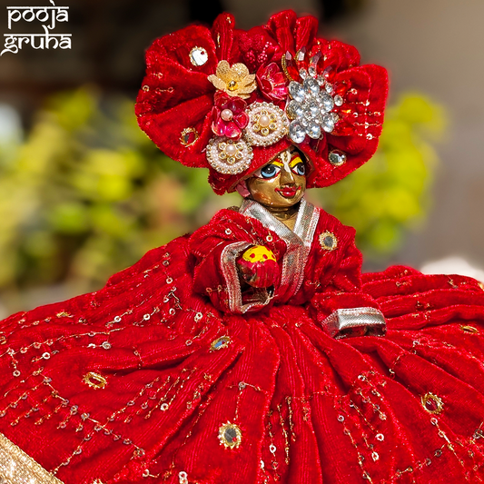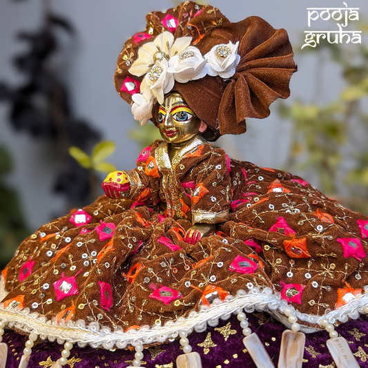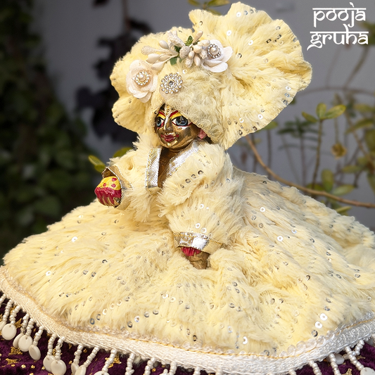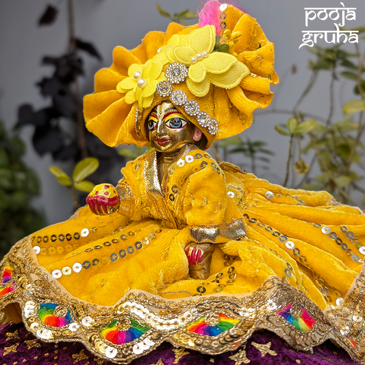 Processing time: 2-3 days (At Pooja Gruha, we create each garment fresh, made-to-order with devotion and care. We believe that every offering to our deities should be filled with love and crafted specifically for them, making each piece truly special).